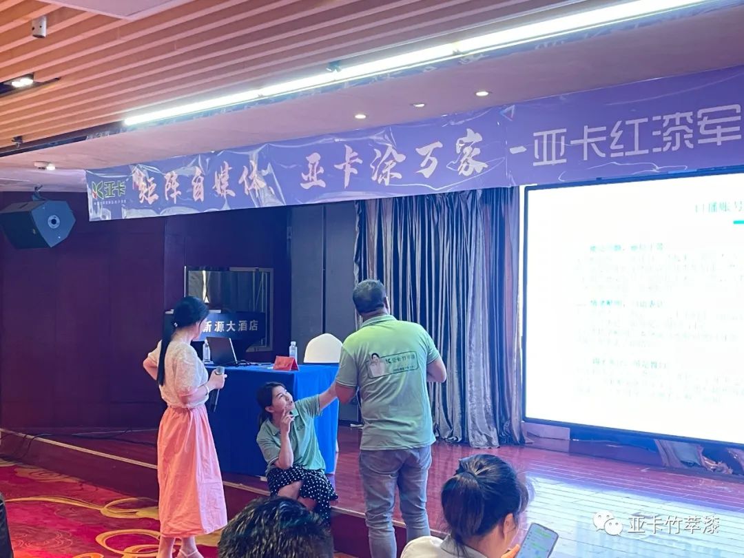 2023 年6 月15—16 日,涂聯(lián)集團亞卡品牌召集各區(qū)域運營中心及全體營銷人員等70 多名人員在江西萬載縣參加了為期兩天的《矩陣自媒體 亞卡涂萬家》自媒體培訓課程。通過培訓,參會學員更深刻地認識到自媒體時代的紅利,也為亞卡品牌的發(fā)展壯大打下了堅實的基礎(chǔ)。