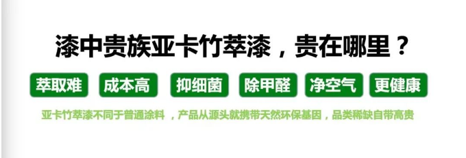 亞卡竹萃漆不同于普通涂料,產品從源頭就攜帶天然環(huán)保基因,品類稀缺自帶高貴,也被稱之為“漆中貴族”。