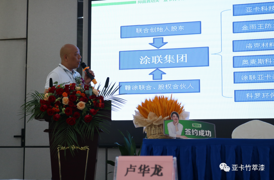 涂聯(lián)集團董事長盧華龍先生、總經(jīng)理謝榮賓先生、江西省涂料協(xié)會會長潘白日先生、清華大學客座教授萬水波先生及8位股權合伙人,亞卡涂料合作伙伴、友商及政府領導都來到現(xiàn)場參加簽約儀式。