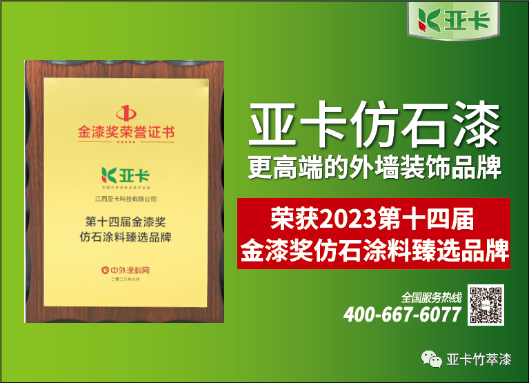 在本屆金漆獎,亞卡品牌憑借優(yōu)秀的產(chǎn)品質(zhì)量與卓越的創(chuàng)新精神,獲得“金漆獎仿石涂料臻選品牌”。同時與本屆金漆獎共同獲獎的品牌還有立邦、三棵樹、嘉寶莉、多樂士、亞士等國內(nèi)外著名涂料品牌。